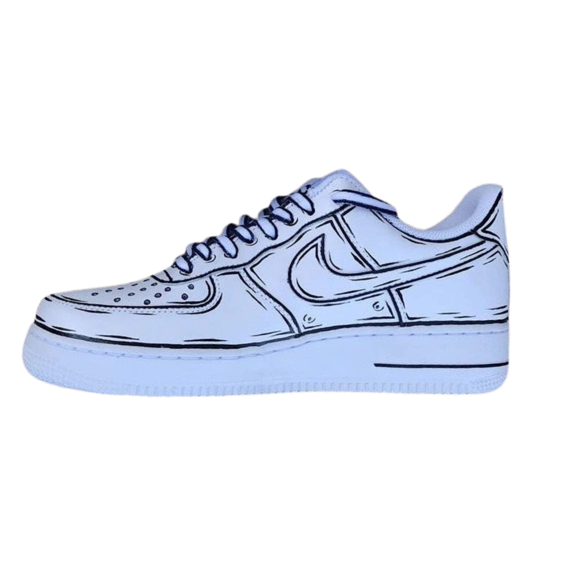 A personalização Cartoon transforma o tênis em um desenho vivo, com linhas marcadas e detalhes em contraste. O visual clean em PB deixa o par estiloso, moderno e super chamativo, mantendo aquela vibe de “saído direto do quadrinho”.